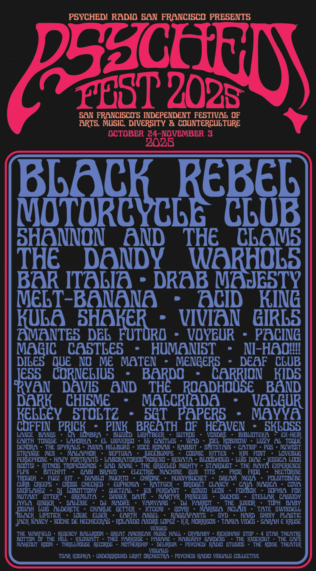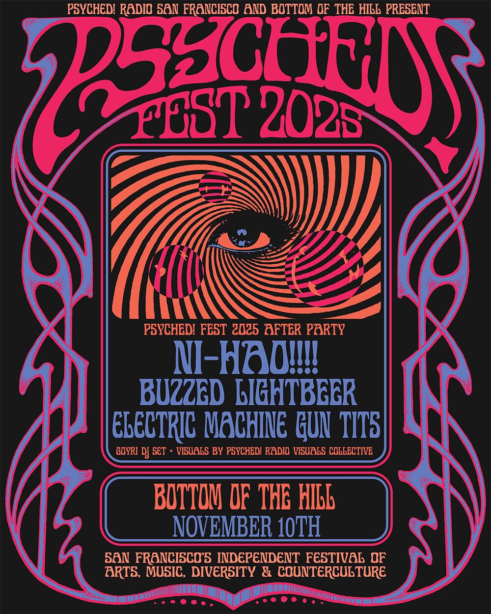 Psyched! Radio San Francisco presents Psyched! Fest 2025 — a two-week celebration of independent music, arts, diversity, and counterculture taking place October 24 through November 3 across San Francisco. Now in its fourth year, the festival returns with its most expansive edition yet: 120 acts spanning punk, psych, cumbia, goth, shoegaze, noise, experimental, and everything in between. From dark basements and neon-lit bars to grand ballrooms and open plazas, Psyched! Fest transforms the city into a maze of sound and spirit.