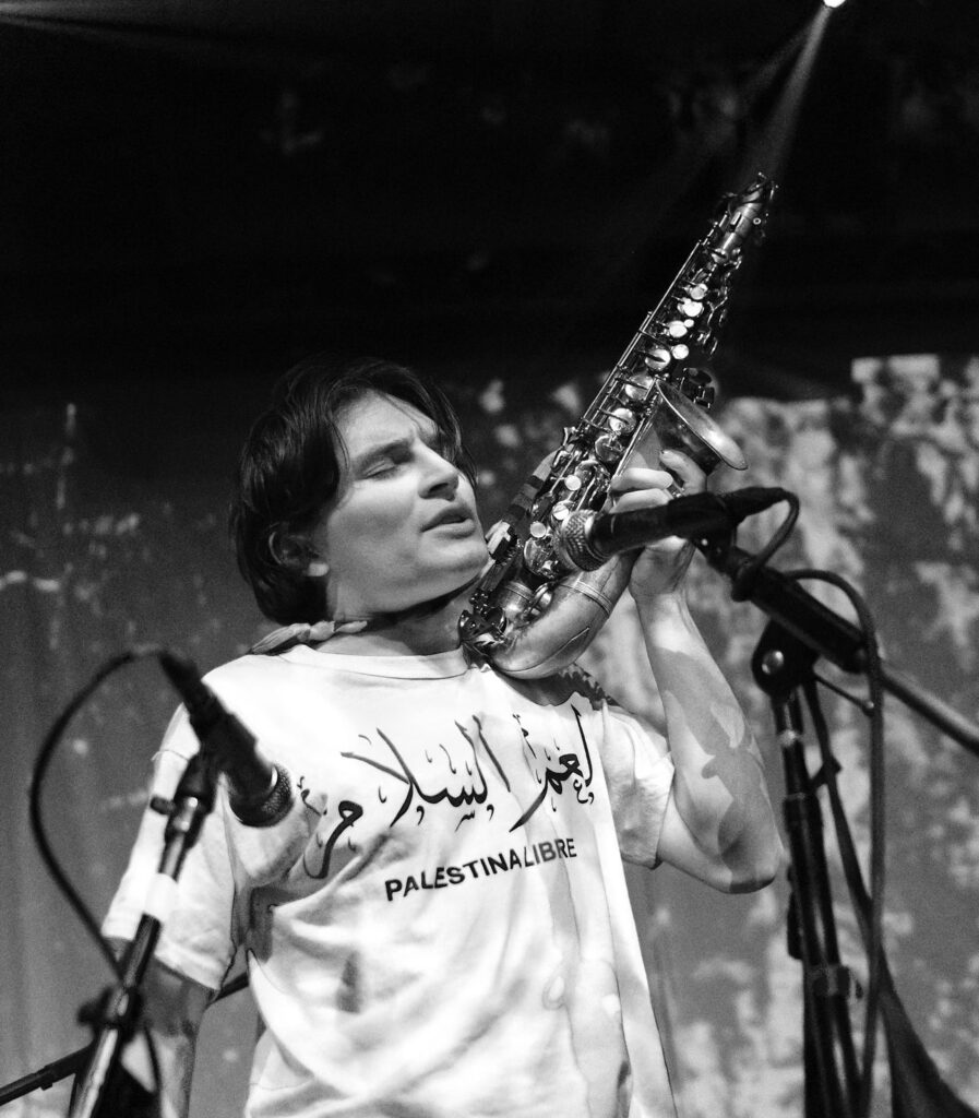 Jonás: Well, Jerónimo has been playing since he was 3 years old, he was playing AC/DC guitar solos since he was in elementary school (laughs); Andrés comes from a family of musicians, his brother is a DJ, he plays the cajón, his mother also plays everything… everyone in his family plays everything; Raúl and Gerardo come from a family of music lovers who raised by force (laughs) two rockers… and me… well, I studied cinema, but my father is a saxophonist, so I didn’t study music until I joined the band and they taught me how to play instruments, my father ended up giving me this saxophone that he didn’t use and I learned to play it during the pandemic.