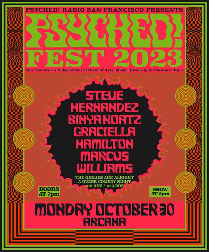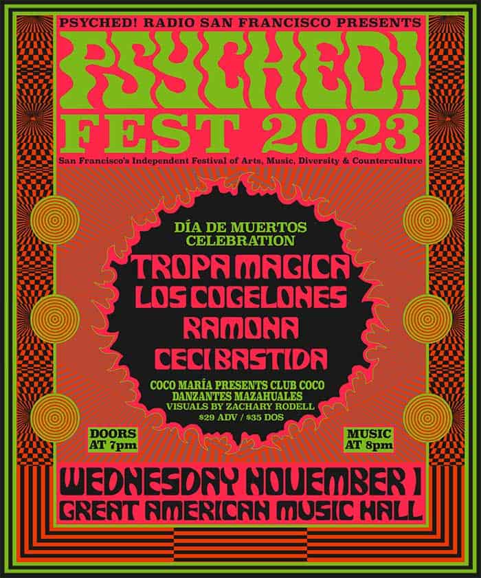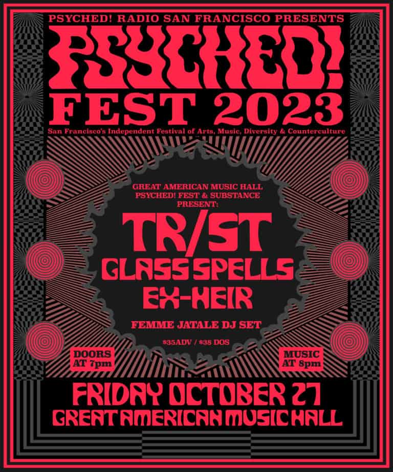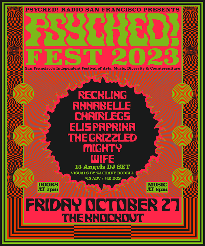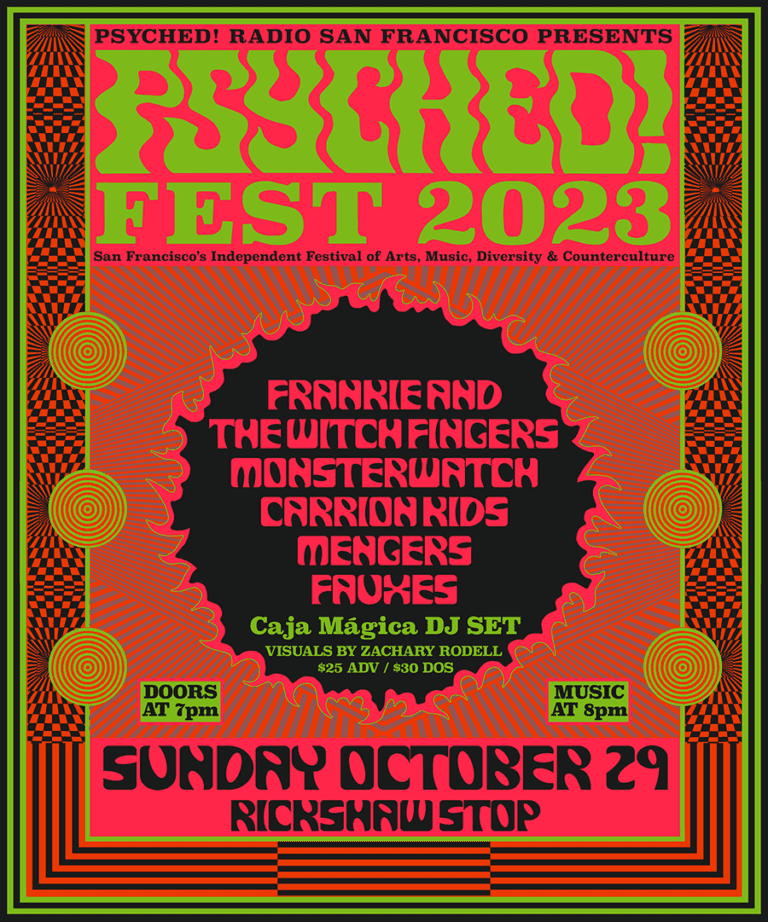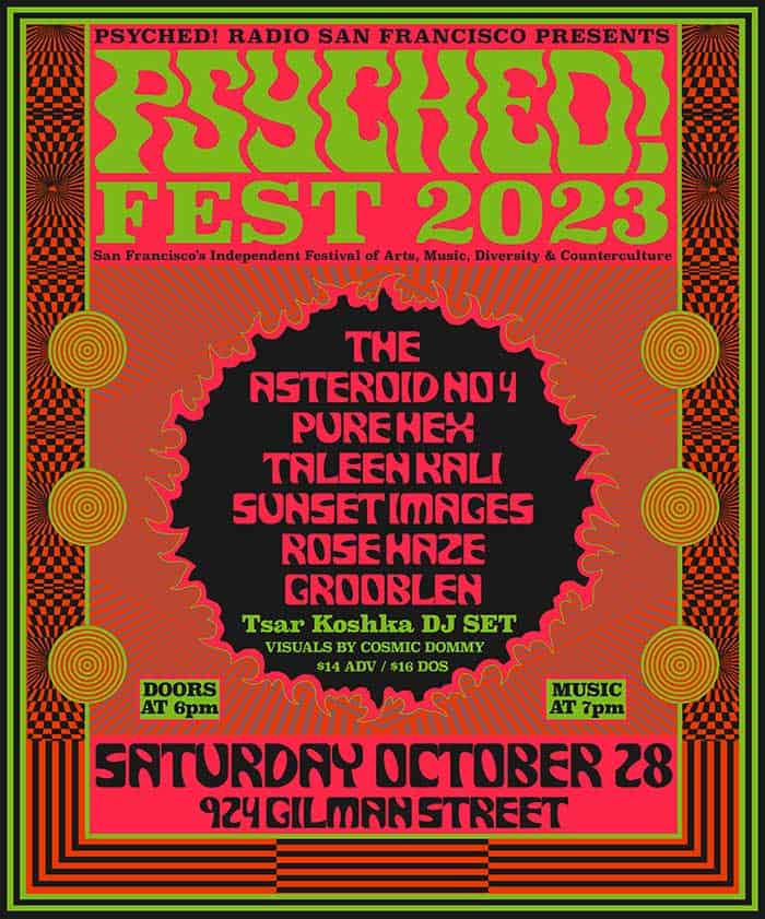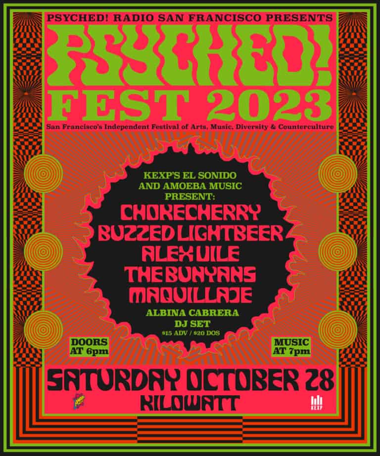 Psyched! Radio San Francisco is proud to announce the second edition of Psyched! Fest. This year our DIY festival will run from October 25 to October 31, 2023, during Halloween week, with nine shows across six historic San Francisco venues: Great American Music Hall, Rickshaw Stop, The KnockOut, Café du Nord, Kilowatt and Thrillhouse Records.